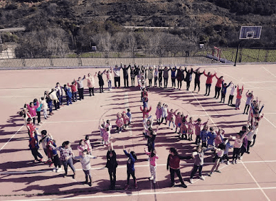 Para conmemorar el día de la PAZ y la NO VIOLENCIA, hemos realizado el símbolo de la PAZ en la pista del patio, entre todos los niños y maestros. Creo que siempre debemos ser los primeros en dar ejemplo a los más pequeños sobre cooperación, ayuda y convivencia.