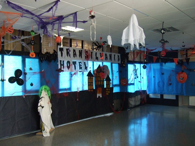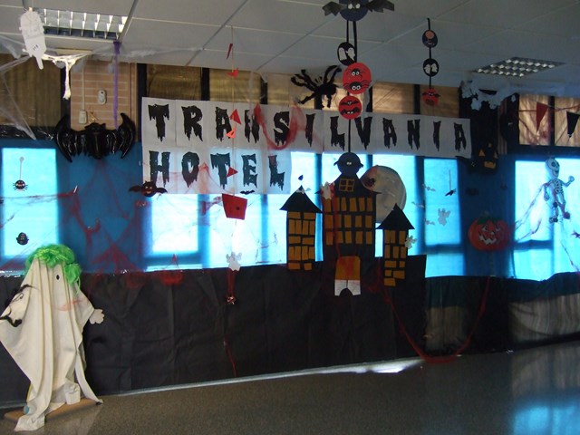 Y así de chulo quedó el hall del colegio con ayuda de los compis y las familias…. 👻👻👻