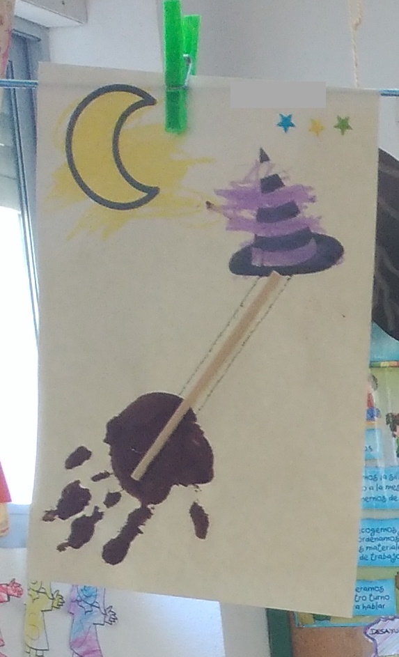👻 Artes plásticas: hacemos nuestra propia escoba estampando la mano y pintando con témperas y dedos.
