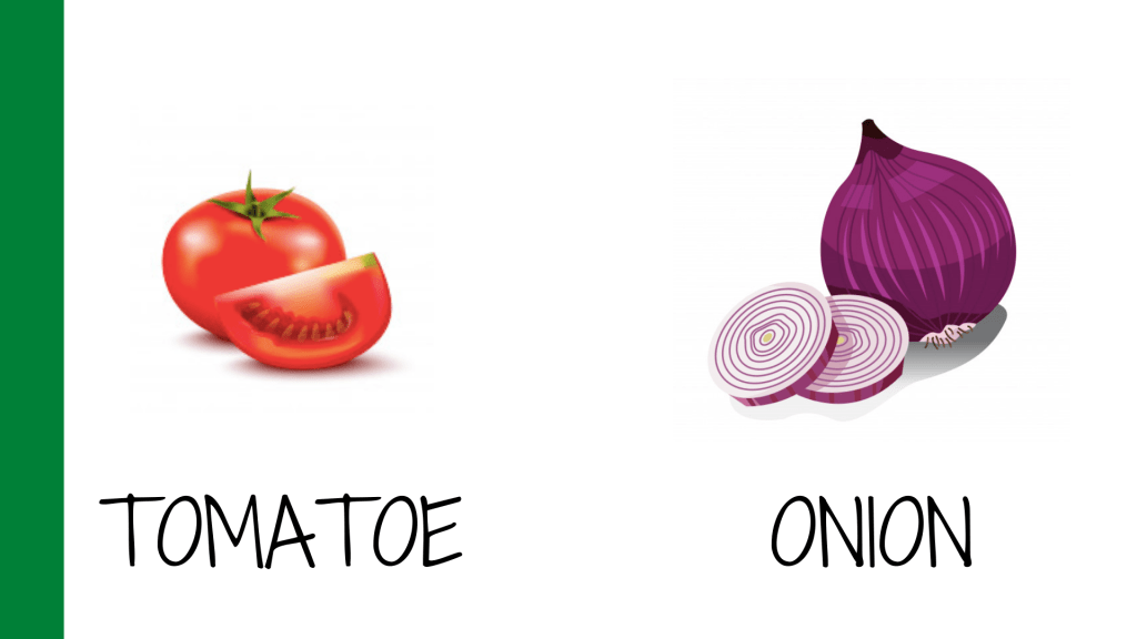 - Jugamos con las frutas y verduras de casa: las vamos viendo y vamos diciendo su nombre en inglés.