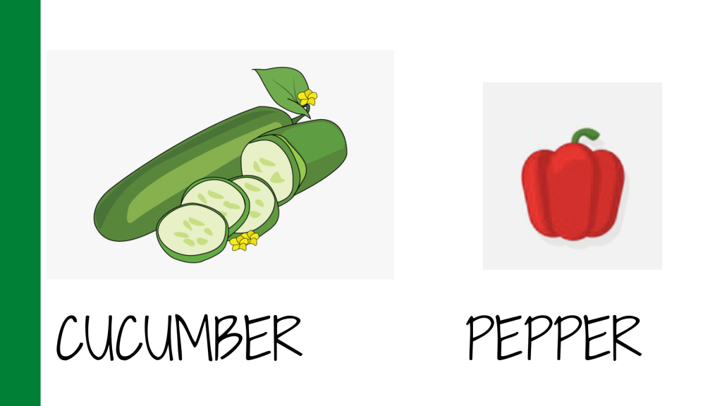 Repasamos el vocabulario, diciendo los nombres de las verduras según vemos las imágenes