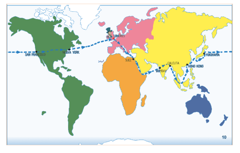 Vamos a ver los países a los que viaja Willy Fog… ¡pincha en las estrellas para verlos bien!