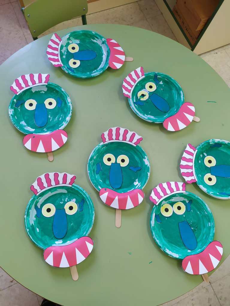 En 3 años hemos leído GO AWAY BIG GREEN MONSTER! Y hemos hecho nuestros propios monstruos con platos de plástico, palitos y las partes de la cara del monstruo (así las repasábamos también en inglés). Os dejo fotos ⬇️ con el enlace al libro por si lo queréis adquirir.