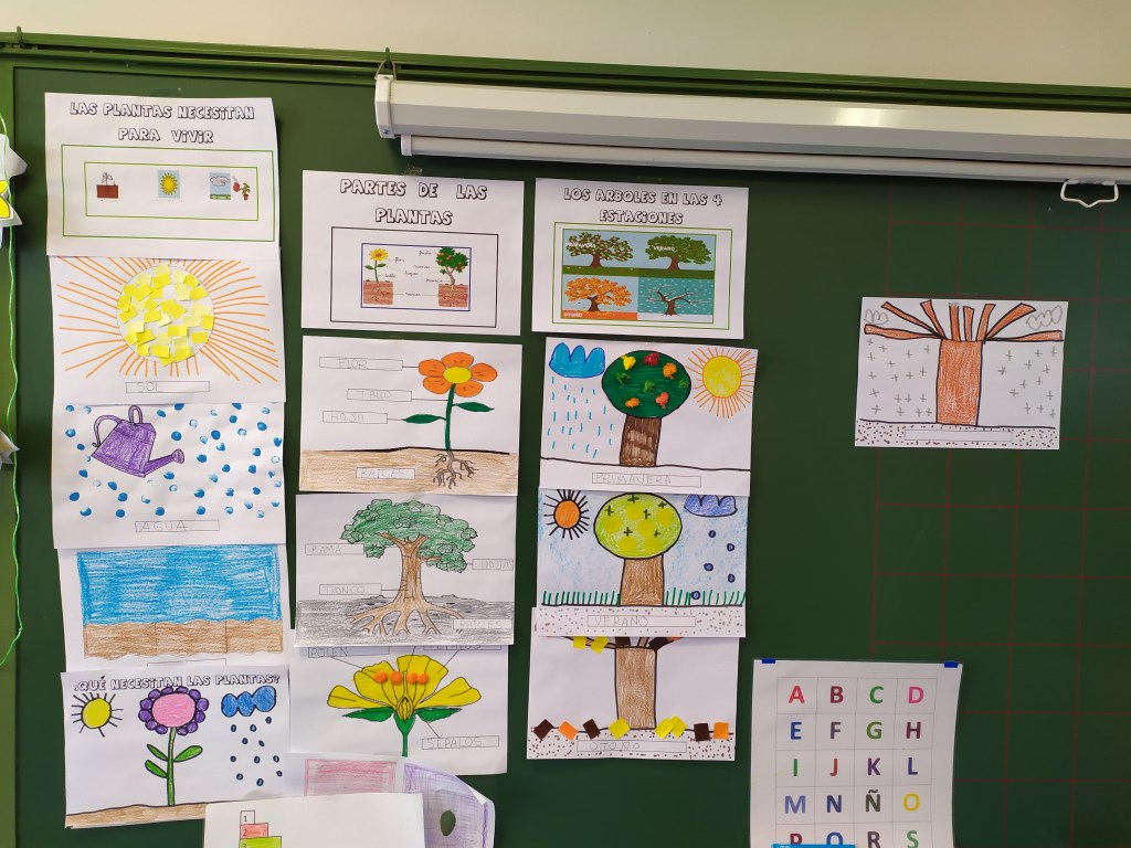 Hemos trabajado las necesidades de las plantas, sus partes, los árboles en las 4 estaciones así como los diferentes tipos de árboles, arbustos y plantas que podemos encontrarnos en la naturaleza.